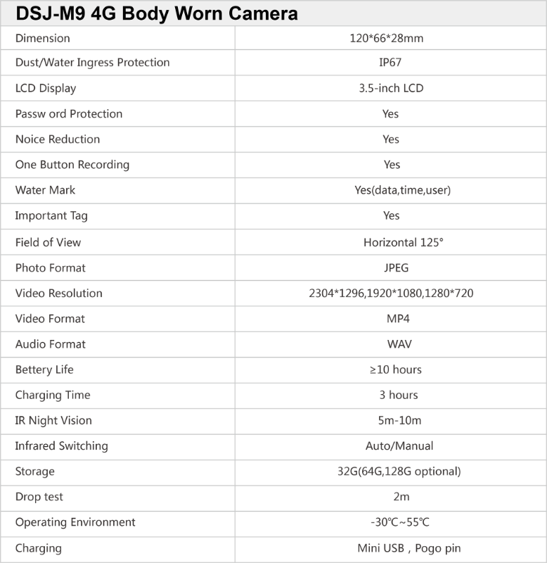 · Non-removable battery design, support long term continuous recording