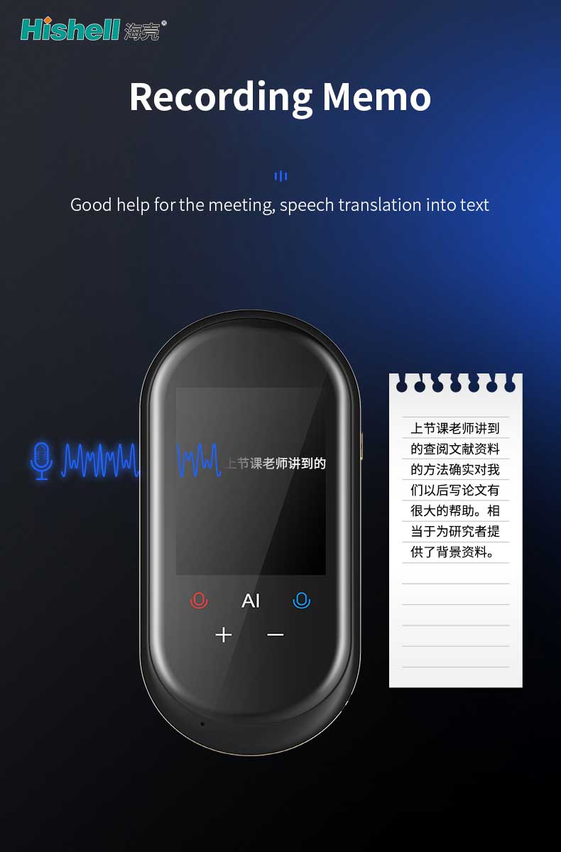 6.Supports 60 minutes continuous recording,suitable for study, meetings, business negotiations,record the audio while changing the text,customizable language